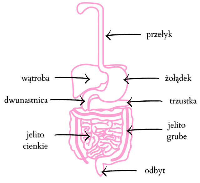 Układ pokarmowy człowieka składa się z przewodu pokarmowego oraz gruczołów trawiennych. Pokarm w przewodzie pokarmowym zaczyna swoją podróż w jamie ustnej, następnie przechodzi do gardła i dalej przechodzi przez przełyk, żołądek, jelito cienki i grube, a następnie jest wydalany odbytem. Do gruczołów trawiennych zaliczamy: ślinianki, wątrobę i trzustkę.