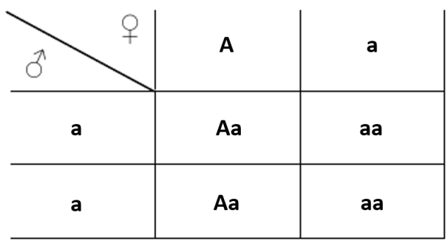 Ojciec jest z pewnością homozygotą recesywną (aa), ponieważ posiada proste włosy, a proste włosy są cechą recesywną i tylko taki genotyp (aa) gwarantuje wystąpienie tej cechy.