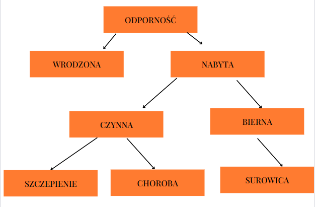 Odporność wrodzona występuje od początku życia człowieka i nie jest swoista dla czynników, działa na każdy patogen. Odporność nabyta jest wykształcana w trakcie życia i jest swoista, czyli wykształcana osobno na różne patogeny. Można ją uzyskiwać zarówno w sposób czynny, czyli przy kontakcie z antygenem, jak i bierny, kiedy zostaną podane gotowe przeciwciała.