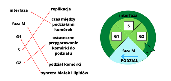 Cykl komórkowy jest to cykl życiowy komórki, który trwa od podziału do podziału. Cykl komórkowy składa się z takich etapów jak: faza M, G1, S, G2. Czas takiego cyklu komórkowego zależy od rodzaju komórki i trwa od kilku do ok. 20 godzin. W przypadku niektórych zwierząt cykle podziałowe są częstsze. Interfaza jest to najdłuższa faza życia komórki i stanowi okres międzypodziałowy.