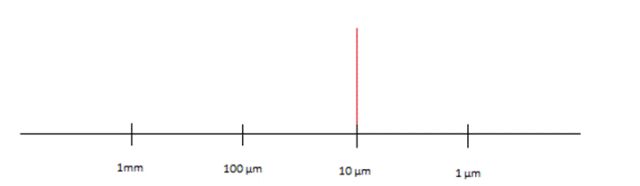 W tym zadaniu twoim celem jest, korzystając z podanej tabelki przeliczania jednostek długości, zaznaczenie na osi granicy, do której ludzkie oko jest w stanie widzieć obiekty.