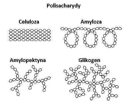 | glikogen | Stanowi materiał zapasowy u zwierząt, a także u grzybów. | |