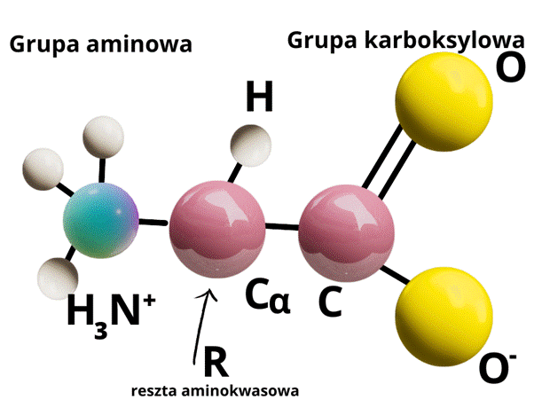 Podstawowe jednostki budujące białka to aminokwasy, które zbudowane są z podstawnika, grupy aminowej i karboksylowej.