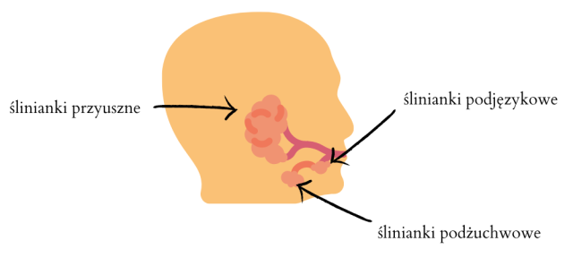 W organizmie wyróżniamy trzy rodzaje ślinianek, które odpowiadają za produkcję śliny. Ślina składa się z wody, białek, jonów oraz enzymów takich jak np. amylaza ślinowa. Funkcją śliny jest ułatwianie formowania kęsa, ułatwienie połykania pokarmu, pełni funkcję trawienną poprzez zawartą w niej amylazę ślinową, trawiącą węglowodany oraz chroni organizm przed patogenami.