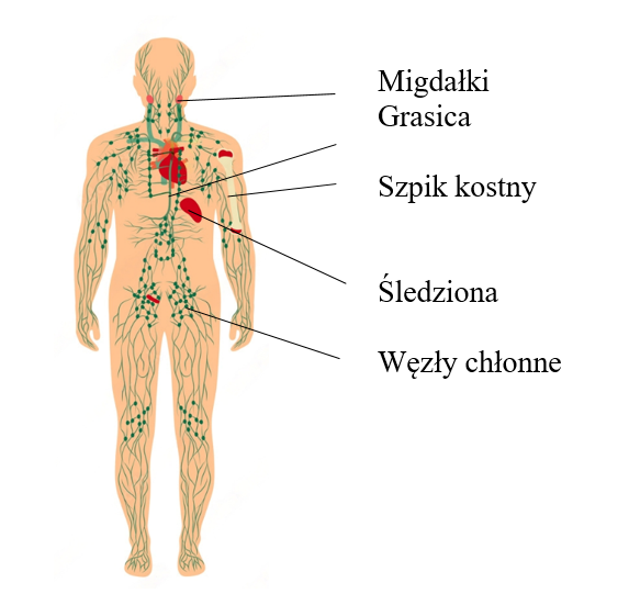 Narządy należące do układu odpornościowego mają charakterystyczny wygląd i funkcje. Grasica odpowiada za dojrzewanie limfocytów, migdałki odpowiadają za produkcję przeciwciał, szpik kostny odpowiada za produkcję krwinek w organizmie, śledziona odpowiada za filtrowanie krwi, natomiast węzły chłonne odpowiadają za filtrację limfy oraz ochronę przed patogenami.