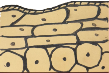 Epiderma składa się z żywych przylegających do siebie ściśle komórek, które pozbawione są typowo wykształconych chloroplastów. Otoczone są one zgrubiałą ścianą komórkową i wysycone kutyną. Na powierzchni kutyna tworzy kutykulę. Poniżej komórek epidermy znajdują się komórki miękiszu.