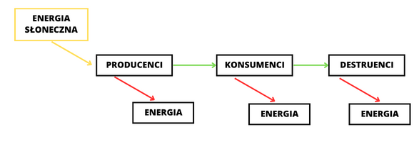 Energia przepływa w ekosystemie, gdyż na każdym poziomie troficzny dochodzi do jej strat. Ponad połowa z niej zużywana jest do oddychania tlenowego.