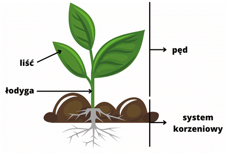 Korzeń ma za zadanie utrzymywać roślinę w glebie oraz pobierać wodę z solami mineralnymi.