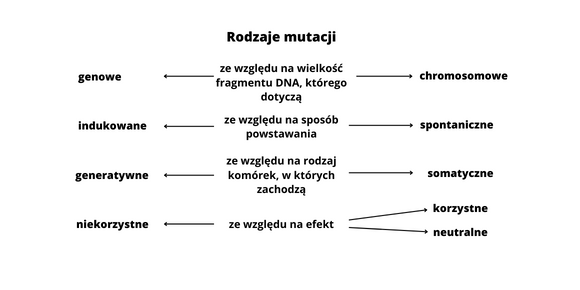 Mutacja jest to zmiana w informacji genetycznej powstająca nagle, losowo, skokowo, a efekty jej są trwałe. Mutacje można klasyfikować, biorąc pod uwagę różne kryteria, mi.in.: rodzaj komórek, na których zachodzą, przyczynę, efekt, a także wielkość DNA.