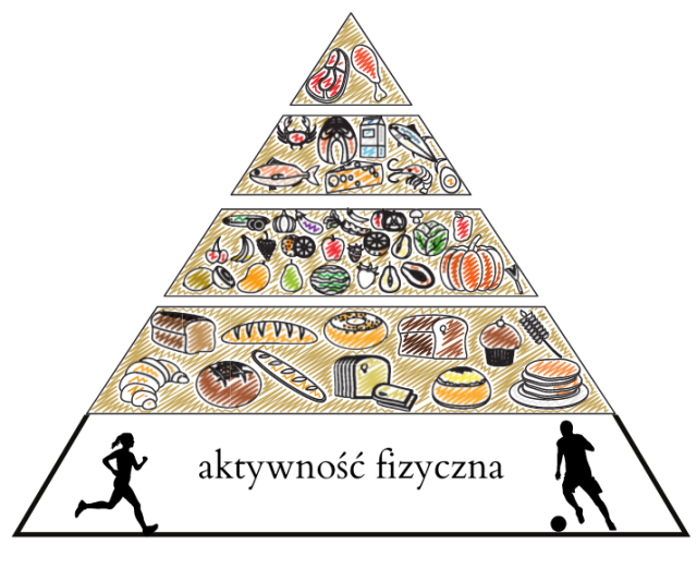 Piramida żywieniowa przedstawia ilości pokarmów w ramach poszczególnych grup, które należy spożywać każdego dnia.