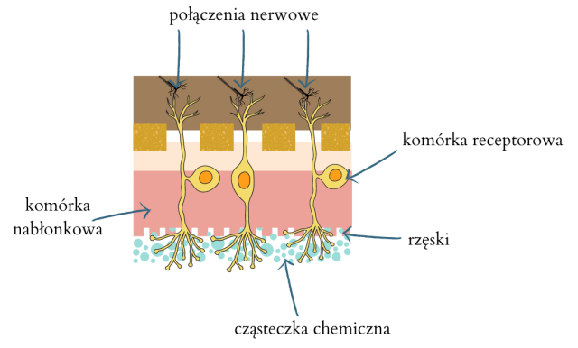 Komórki nerwowe w nabłonku węchowym nosa odpowiadają za wychwytywanie zanieczyszczeń oraz drobnoustrojów chorobotwórczych. Brodawki w kubkach smakowych odpowiadają za odbieranie smaków na języku.