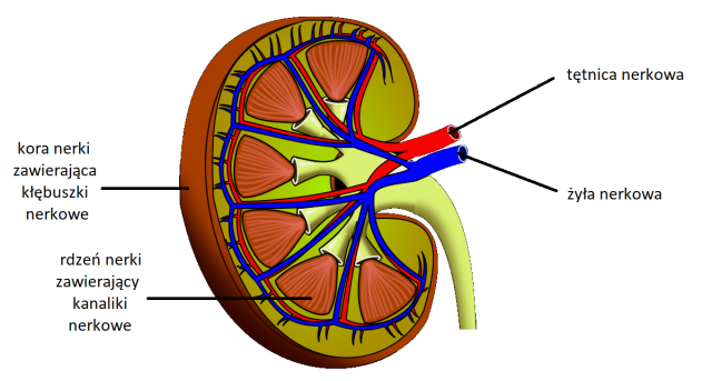 Nerki zbudowane są z kanalików nerkowych. Kanaliki nerkowe otoczone są naczyniami włosowatymi. Funkcją nerek jest filtrowanie krwi i oczyszczanie jej ze szkodliwych i zbędnych substancji. W efekcie powstaje mocz, składający się m.in. z mocznika, wody i soli mineralnych, który usuwany jest z organizmu.