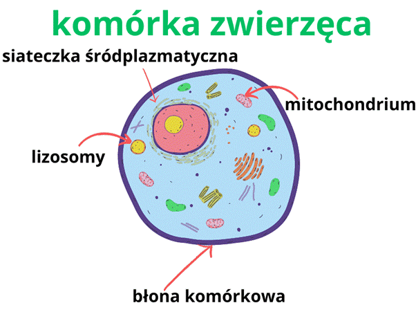 Musisz zgodnie ze schematami budowy komórek eukariotycznych nazwać elementy 1-3, a następnie określić, że jest to komórka zwierzęca, o czym informuje głównie brak ściany komórkowej. Drugim argumentem może być obecność lizosomów charakterystycznych dla tego typu komórek.