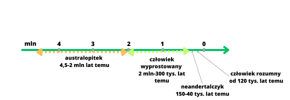 Ważną informacją z dziejów naszej Ziemi jest fakt, iż linia ewolucyjna człowieka oddzieliła się od goryli około 7,5 mln lat temu, natomiast od szympansów około 5,5 mln lat temu.
