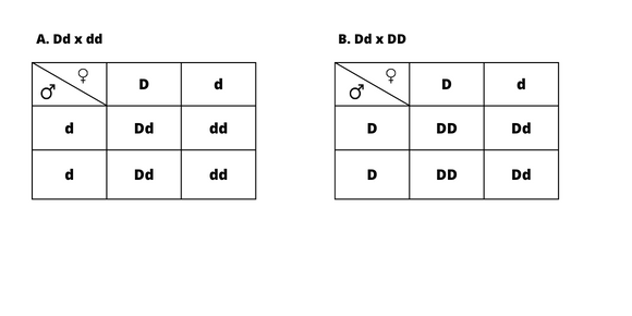 W wyniku skrzyżowania heterozygoty z homozygotą recesywną otrzymujemy genotypy potomne takie jak: Dd, dd, Dd, dd (czyli dwie heterozygoty i dwie homozygoty recesywne). Natomiast jeżeli skrzyżujemy heterozygotę z homozygotą dominującą, to otrzymujemy genotypy potomne takie jak: DD, DD, Dd, Dd (czyli dwie homozygoty dominujące i dwie heterozygoty).