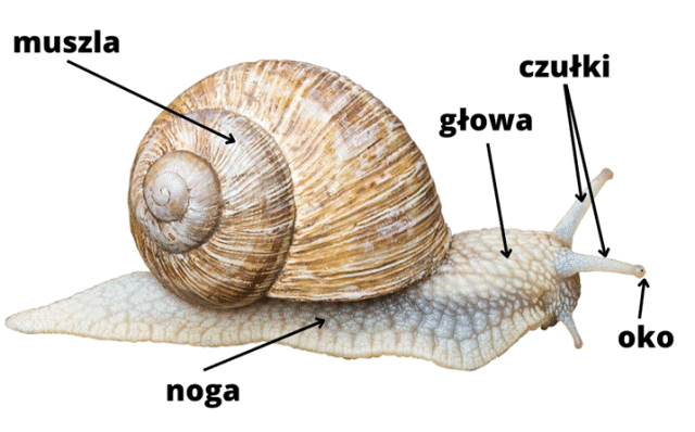 ● głowa (nieobecna u małży) znajdują się na niej: otwór gębowy, czułki i oczy,