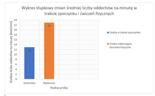 Hipoteza postawiona do eksperymentu jest prawdziwa, ponieważ wysiłek fizyczny zwiększa średnią liczbę oddechów na minutę.