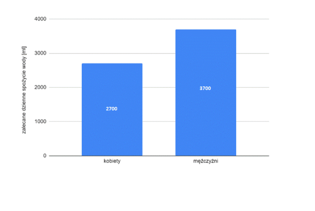 Zauważ, że wykres ma dotyczyć wyłącznie spożycia osób dorosłych. Informacja dotycząca zalecanego spożycia wody przez niemowlęta i dzieci nie jest istotna z punktu widzenia tego zadania.