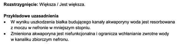 Określ, czy przy niefunkcjonalnej akwaporynie ilość wydalanego moczu jest większa czy mniejsza niż normalnie. Uzasadnij, odwołując się do roli akwaporyny w tworzeniu moczu.