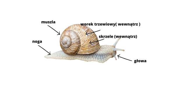 Podkreśl: worek trzewiowy, noga, muszla, skrzele, głowa