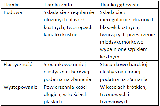 Różnice w budowie tkanki kostnej zbitej i tkanki kostnej gąbczastej wynikają z różnorodnych funkcji pełnionych przez dane tkanki.