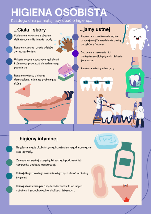 Ważne jest przestrzeganie zasad higieny w wieku dojrzewania ze względu na wzmożoną aktywność gruczołów łojowych i potowych, co może prowadzić do nadmiernego wydzielania sebum i potu. Regularne mycie skóry pomaga usunąć nadmiar tłuszczu i zanieczyszczeń, zapobiegając powstawaniu trądziku i infekcji skórnych.