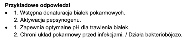 · przede wszystkim zapewnia silnie kwaśne środowisko, które jest niezbędne do prawidłowego działania enzymów trawiennych, zwłaszcza pepsyny. Aktywuje on pepsynogen, czyli nieaktywną formę enzymu, przekształcając go w pepsynę trawiącą białka;