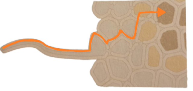 Na podstawie informacji o przewodzeniu wody roślinie z gleby, musisz wskazać kanał, którym woda wędruje w poprzek korzenia.