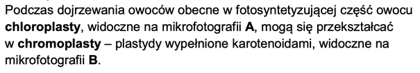 Uzupełnij zdanie tak, aby prawidłowo opisywało przemiany plastydów, wpisując odpowiednie nazwy plastydów oraz przyporządkuj właściwe oznaczenia literowe mikrofotografii (A–C).