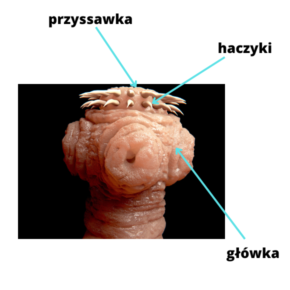 W tym zadaniu musisz wskazać na obrazku i podpisać elementy budowy tasiemca, które wymieniono w ramce.
