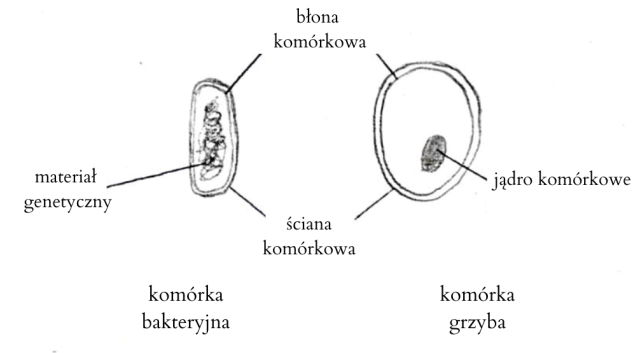 W tym zadaniu musisz podpisać komórkę grzyba i bakterii, a następnie podpisać wskazane elementy tych komórek.