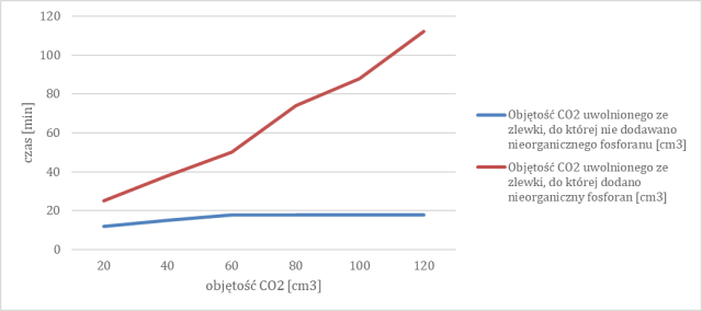Bazując na opisie doświadczenia z dodawaniem nieorganicznego fosforanu (Pi), musisz przedstawić jego wyniki w postaci wykresów liniowych w jednym układzie współrzędnych.