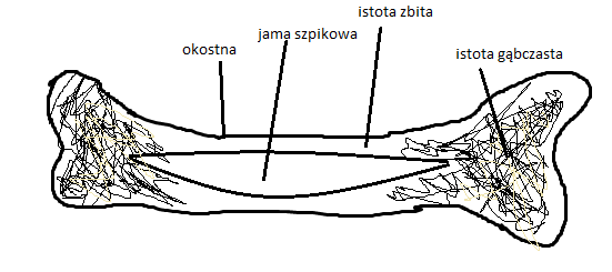 W tym zadaniu musisz narysować w zeszycie przekrój kości długiej wraz z podpisem elementów jej budowy wewnętrznej.