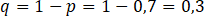 Częstość allelu B wynosi 0,7. Częstość drugiego allelu to zatem: