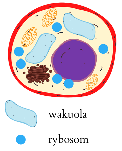 Zastanów się, za co odpowiadają rybosomy, a za co wakuole i narysuj je. Przypomnij sobie, jaki mają kształt i spróbuj narysować coś podobnego.