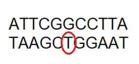 Szósty nukleotyd dolnej nici będący tyminą jest błędem, ponieważ w jego miejscu powinna znajdować się cytozyna łącząca się z szóstą guaniną górnej nici zgodnie z zasadą komplementarności.