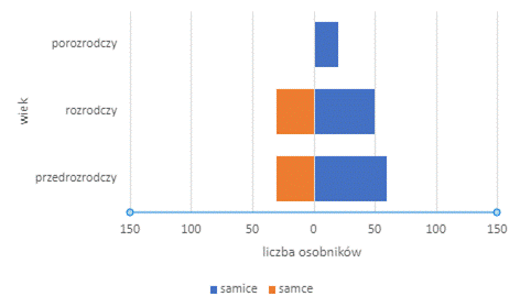 Opisana populacja jest populacją ustabilizowaną, ponieważ liczba osobników w poszczególnych grupach wiekowych jest podobna, przy czym osobników w wieku porozrodczym jest najmniej.