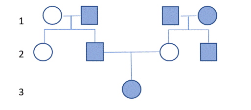 Niebieskim kolorem zaznaczono występowanie kręconych włosów, a białym – prostych. Na podstawie tych informacji można założyć, że podana cecha jest dziedziczona autosomalnie dominująco.