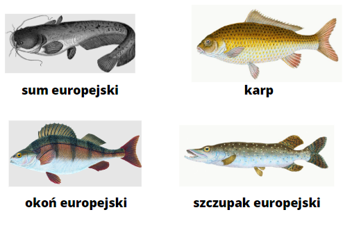 W tym zadaniu musisz rozpoznać i podpisać przedstawione na obrazkach gatunki ryb.
