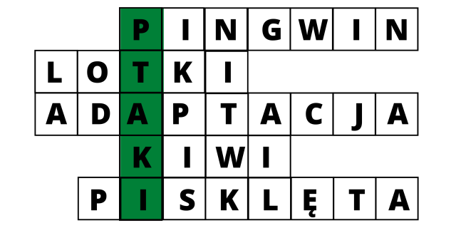 Wpisz litery do kratek w logogryfie, a następnie odczytaj hasło z zielonych kwadratów.