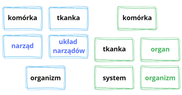 Przypomnij sobie, z czego zbudowane są organizmy żywe. Uzupełnij puste miejsca odpowiednimi nazwami.