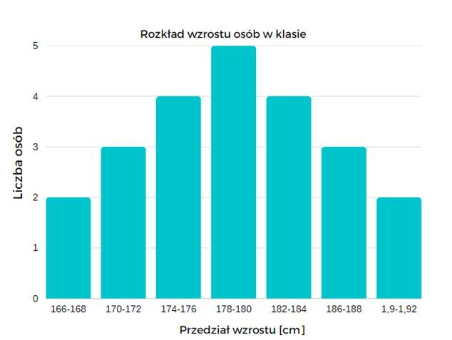 Charakterystyczny, dzwonowaty kształt histogramu nazywamy krzywą Gaussa, która oznacza, że np.: większość osobników danej populacji wykazuje cechy umiarkowane (czyli) średnie.