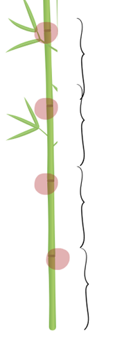Zastanów się, czym są węzły, a czym międzywęźla. Zaznacz na obrazku międzywęźla klamrami, a węzły kropkami.
