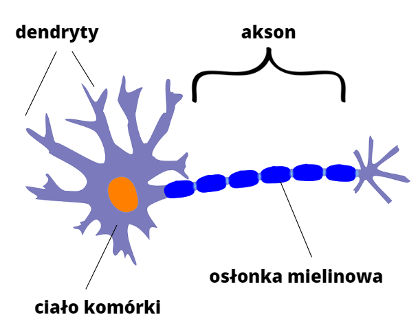 Akson – odpowiada za przesyłanie impulsów wzdłuż komórki.