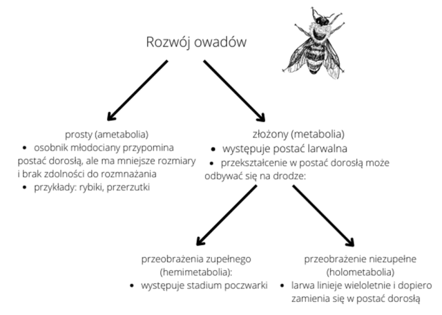 Uzasadnienie: W rozwoju między stadium larwy i imago występuje stadium poczwarki.