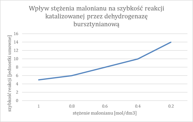 Na podstawie informacji o dehydrogenazie bursztynianowej i przedstawionej tabeli musisz przedstawić wpływ stężenia a szybkość reakcji katalizowanej przez dehydrogenazę bursztynianową w postaci wykresu liniowego.