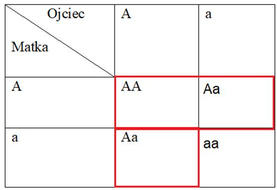 Prawdopodobieństwo wystąpienia danej cechy możesz łatwo obliczyć, gdyż każda kratka z genotypem pokolenia stanowi 25% całości jego możliwego genotypu. Ponieważ są trzy możliwości odziedziczenia ciemnego koloru włosów w konfiguracji dwóch heterozygot, prawdopodobieństwo wynosi 75%.