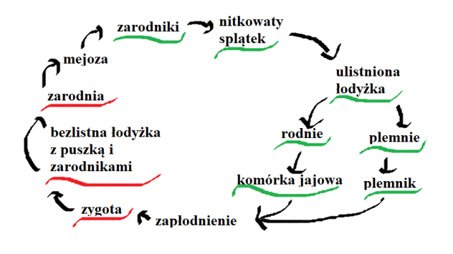 Gametofit jest pokoleniem haploidalnym, a sporofit — diploidalnym.
