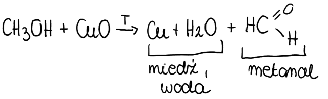 Zapisz wzory strukturalne i nazwij produkty utleniania metanolu.