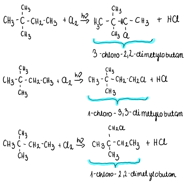 Przedstawione reakcje biegną zgodnie z mechanizmem wolnorodnikowym, a do ich zajścia wymagana jest obecność światła.